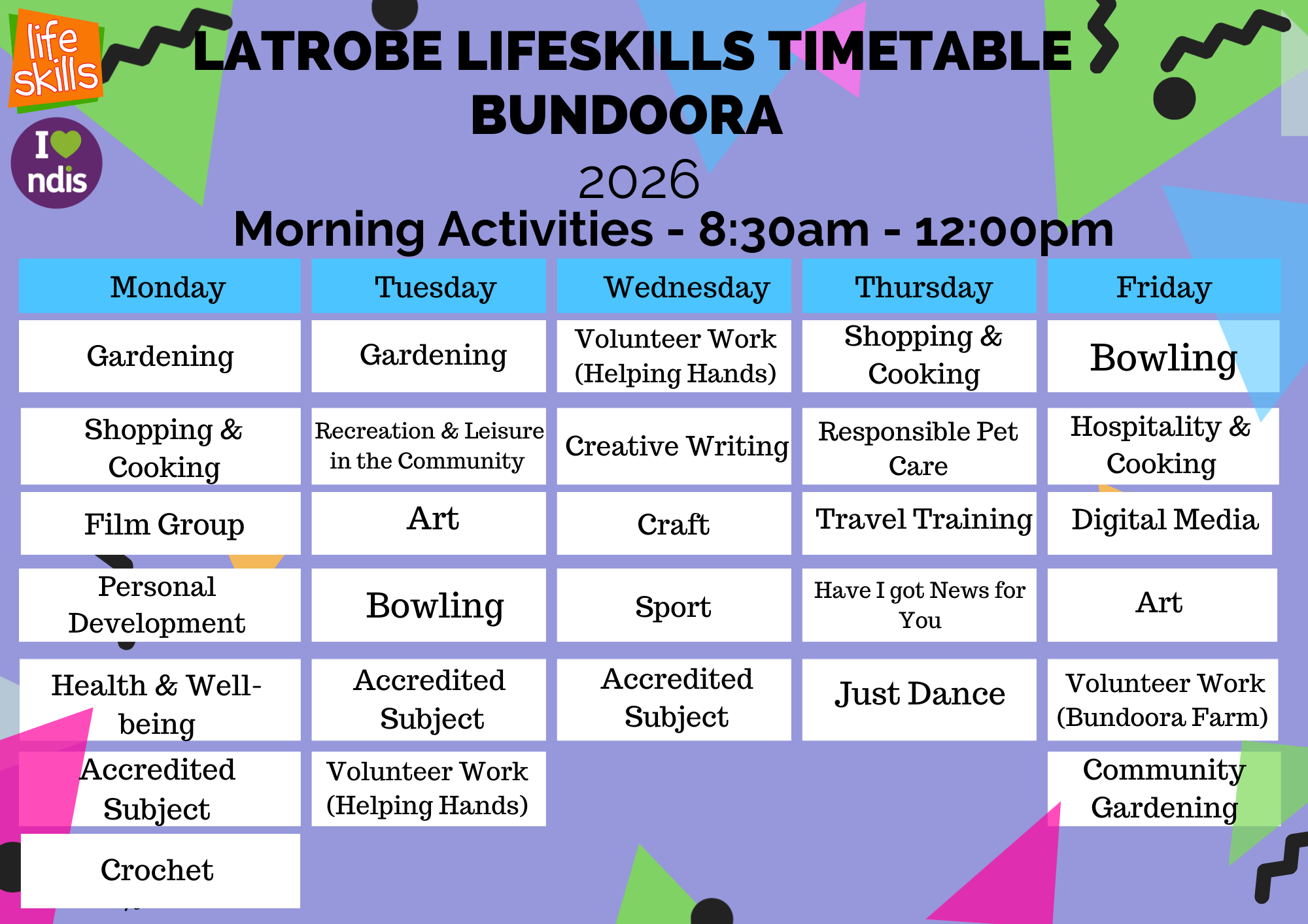 Be sure to check out our Timetable page for the latest of our engaging NDIS activities and education options.